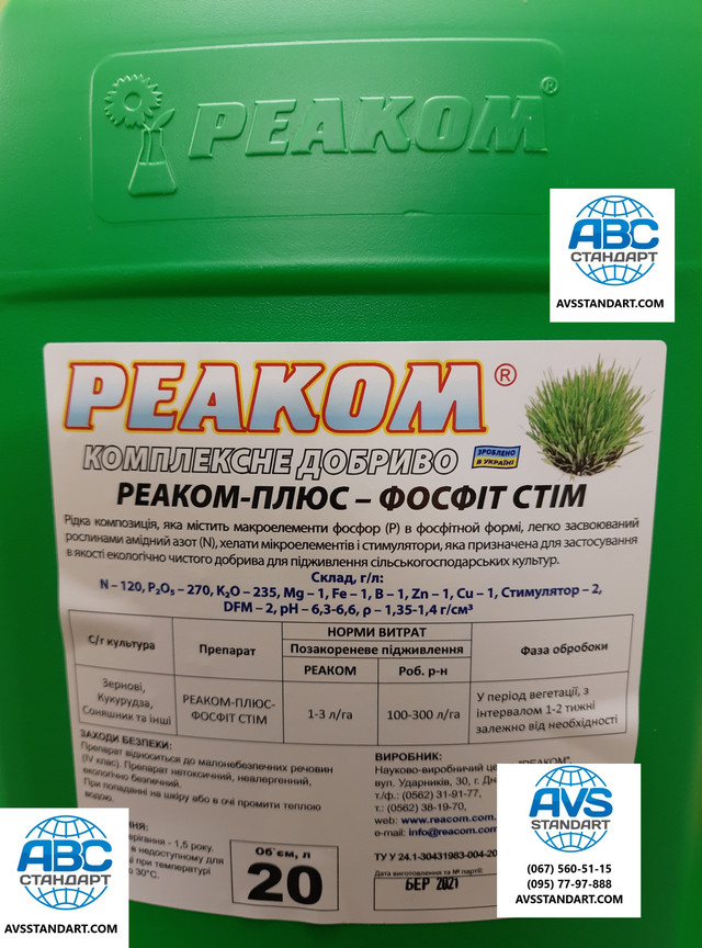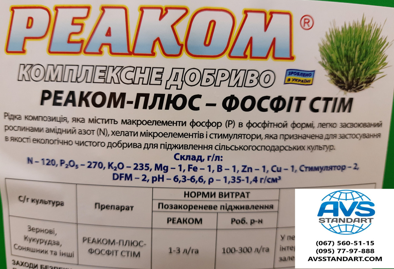 Рідке Комплексне Добриво на Соняшник РЕАКОМ-ПЛЮС-ФОСФІТ СТІМ NPK 12-27-23 з мікроелементами та двома стимуляторами росту Ауксин і Крезоцин.